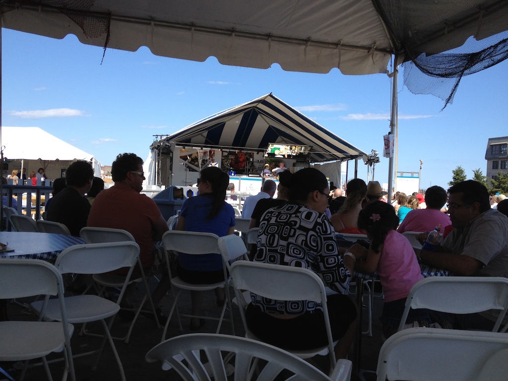 - Passed the human-sized lobster trap we sat in on a live-cooking show while chomping down on lunch.