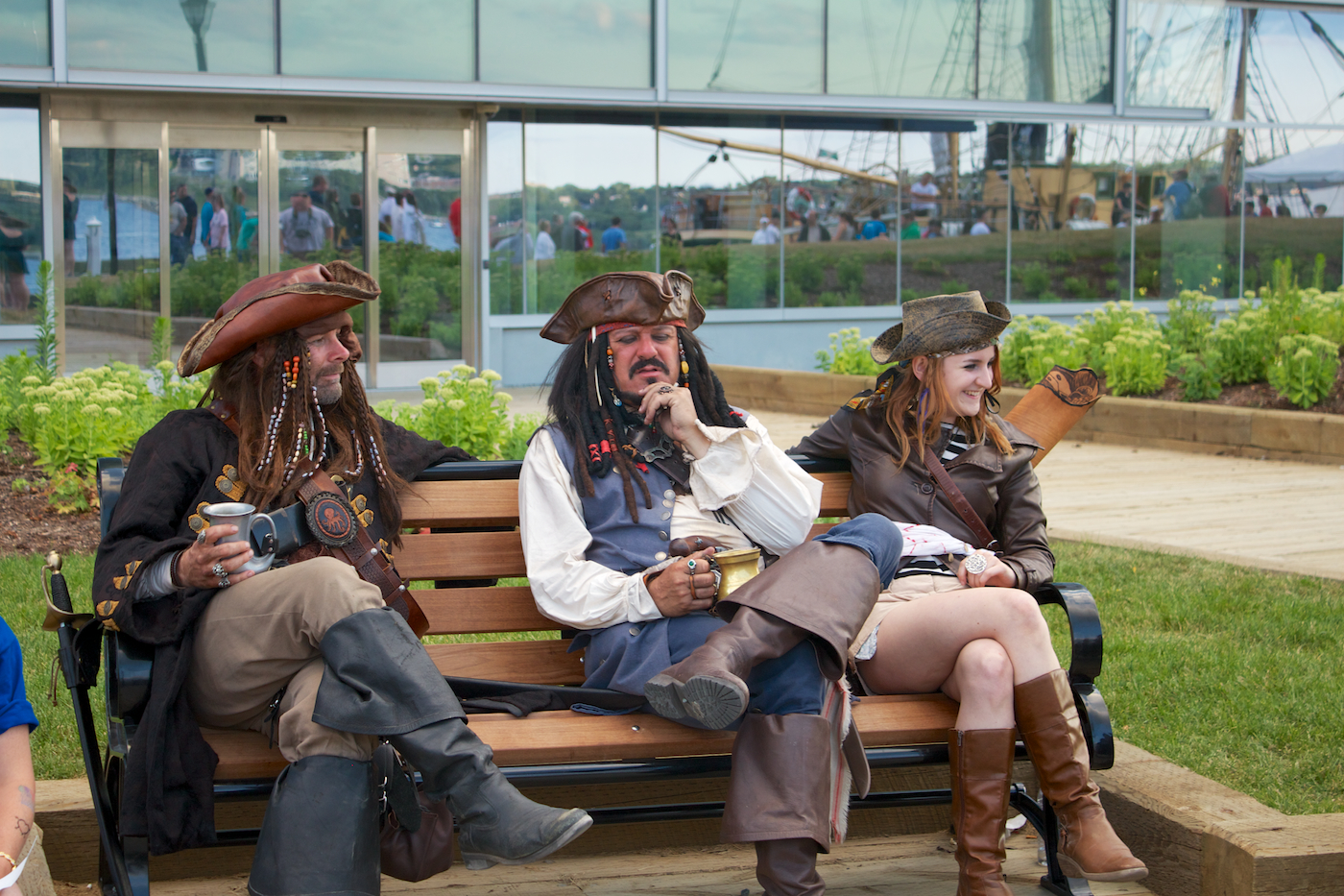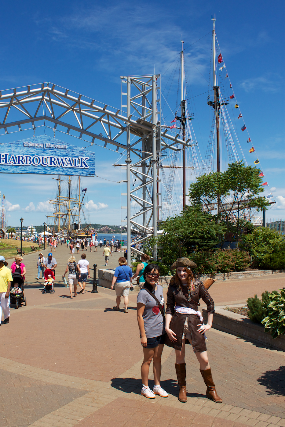 It’s not everyday you have your very own pirate to escort you around the Halifax pier amongst the numerous gorgeous ships docked there for the Tall Ships Festival. At just $5 we each got a pass to board and tour all the tall ships. With free tattoos (spray on and fake of course), costumed character doing demonstrations, and with fireworks on the harbour every night, it was quite the adventure! Hannah guided us through the nooks and crannies novice-Halifax-visitors, like ourselves, often overlook. Dressed like a real pirate for her class project, she easily split the crowds of people like Moses and the Red Sea as we walked from one ship to another.