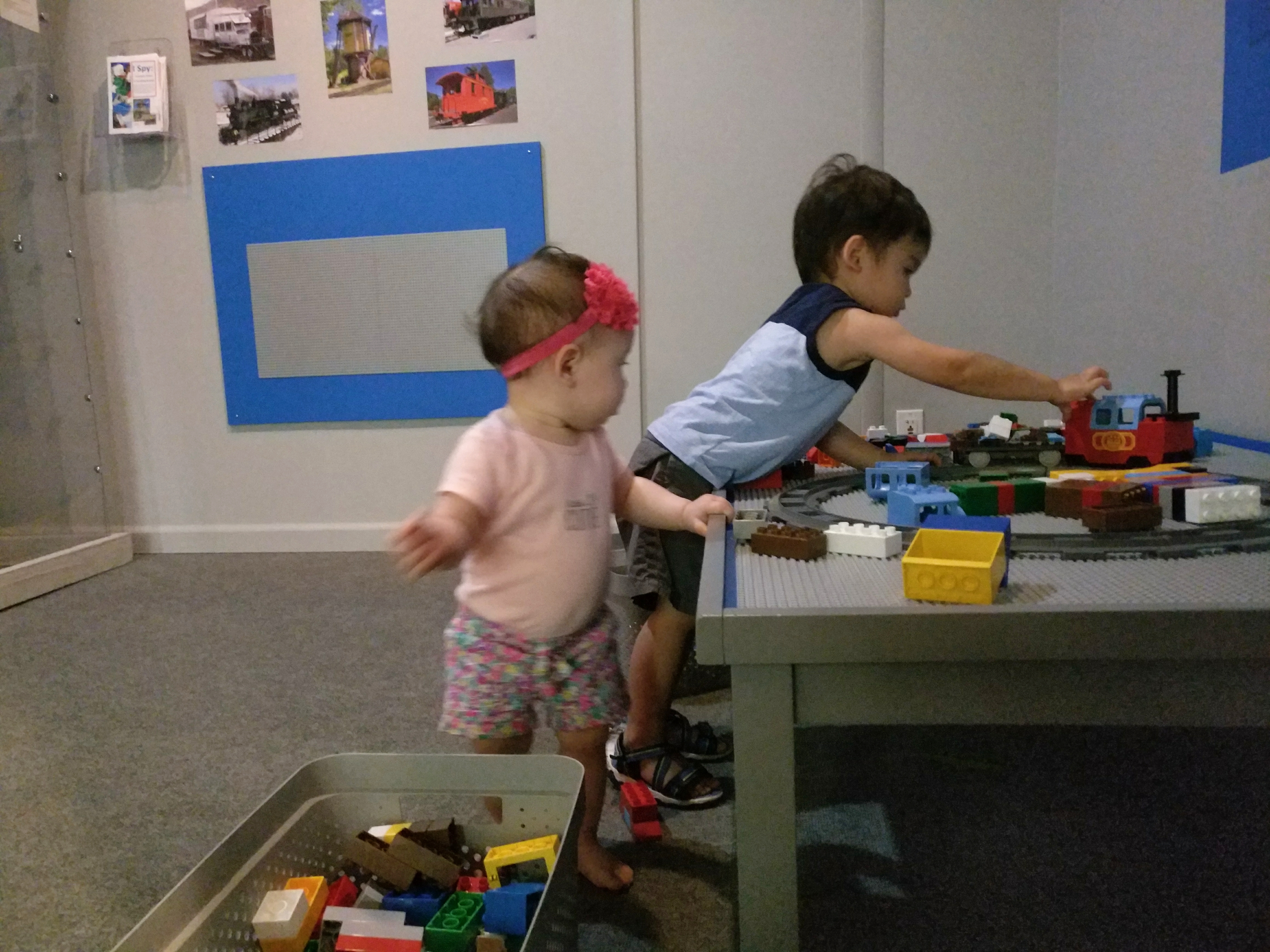 Before we entered deep into the mountain side, just west of Denver in the city of Golden there’s a fun train museum called The Colorado Railroad Museum that we read was recommended for children. Dominic currently loves anything with wheels be it construction rigs, dinky cars, and of course, trains. He was napping when we arrived, and as he woke to see a train passing right in front of our car with passengers, he just thought it was the coolest thing he’d ever seen. He excitedly squealed, waving at the people, “Hey guys! Hi there! Choo choo train! Woah!!! Cool!!!” We knew right away this would be a long stop and it ended up being a great one for our family. Downstairs past the gift shop was a little museum with model trains and a little play area for the kids with train tables, Lego trains and other train toys. Both Audrey and Dominic loved getting down and playing for a bit. It’s so difficult to find a play area that both kids can enjoy when you’re traveling. Playgrounds are great for Dominic but Audrey is still too little for it, so finding a spot like this was golden (haha pun intended).