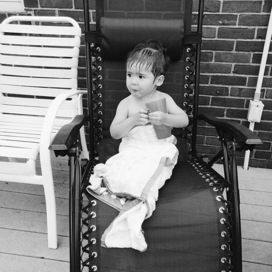 After doing a few pending tasks (trying to repack the van, getting some work done, 2 loads of laundry, dishes, and rethinking the rest of our route), we ended the day with a swim in their pool. Dominic was so brave and sometimes a bit too daring for this poor mama’s heart as he jumped into the pool and used a floaty all by himself for a while! Audrey clung to me but was a good sport in the water given that she was still a bit disorientated from waking up from her nap. She had two solid naps today, both 2 hours + which hasn’t happened in so long. I think she’s catching up on all the sleep she’s been missing while we’ve been traveling. Matt fired up the grill and cooked up burgers with a mix of venison (that he hunted himself) and pork, zucchini from their garden, and Colleen prepared a delicious caprese salad with basil from their garden! What a meal! For a sweet finish, I baked them my favourite chocolate cake for dessert which we enjoyed while it was still warm. It really felt like a summer day out on their back deck enjoying the mild day, a dip in the pool, good food and company, and watching the fireflies come alive upon which Dominic ensued to enthusiastically chased them around the yard.